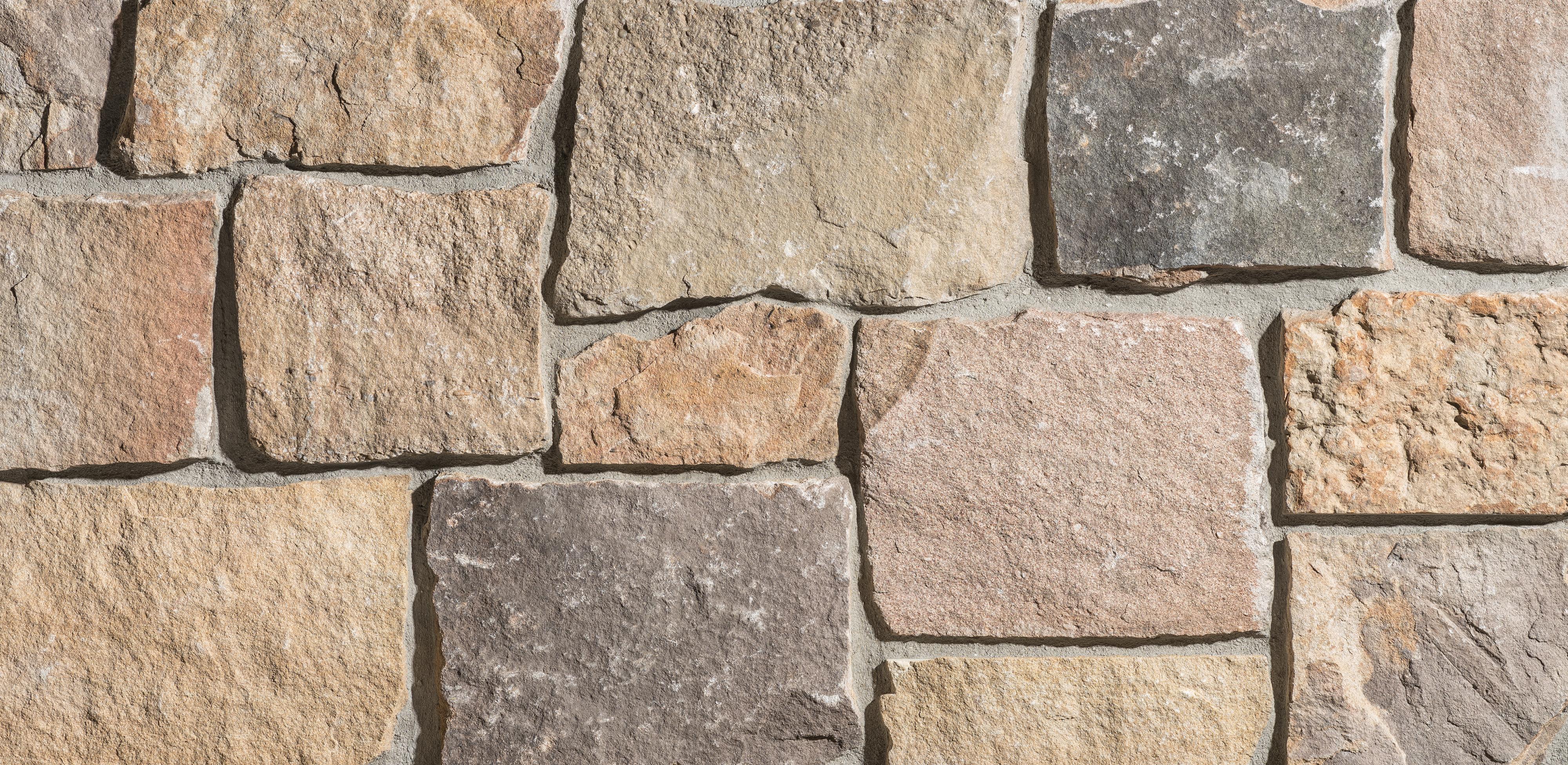 Rustic Ashlar Elkton Ridge is a medium sized ashlar style stone. It has various sandy tans as well as some dark brown spotters. It is typically installed with a mortar joint, but it may be installed in a dry-stacked style with additional cutting and fitting.